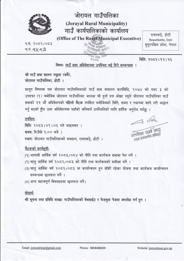 गाउँ सभा अधिवेशनमा उपस्थित भई दिने सम्बन्धमा ।