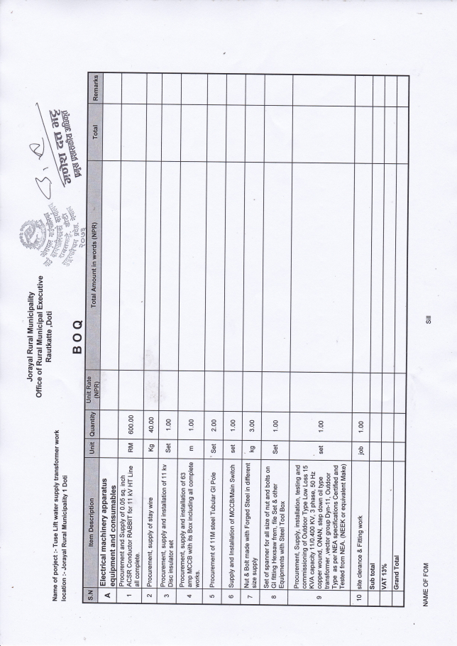 दररेट पेश गर्ने सम्बन्धी सूचना !