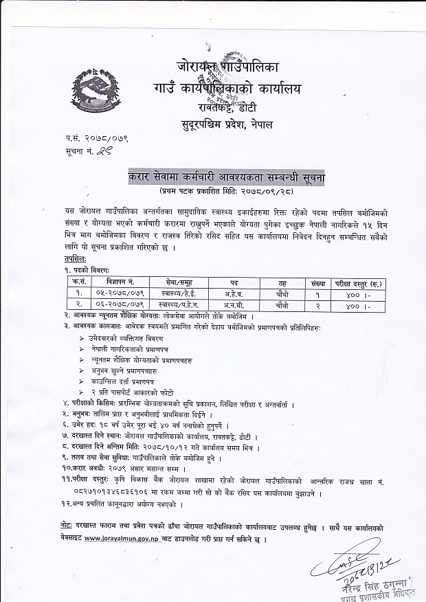 करार सेवामा कर्मचारी आवश्यकता सम्बन्धी सूचना