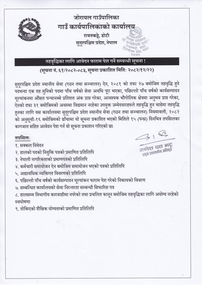 तहवृद्धिका लागि आवेदन फारम पेश गर्ने सम्बन्धी सूचना !