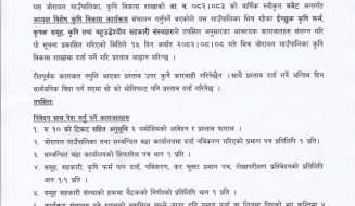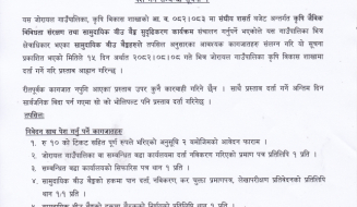 एक पालिका एक नमुना नगदे बाली प्रवर्द्धनको लागि कृषि र सिंचाई सहकार्य अनुदान कार्यक्रमका लागि प्रस्ताव पेश गर्ने सम्बन्धी सूचना !