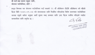 खानेपानी मुहान दर्ताको सन्दर्भमा कोहि कसैको दावी विरोध तथा विवाद भएमा स्पष्ट आधारसहित निवेदन दिने सम्बन्धी सूचना !